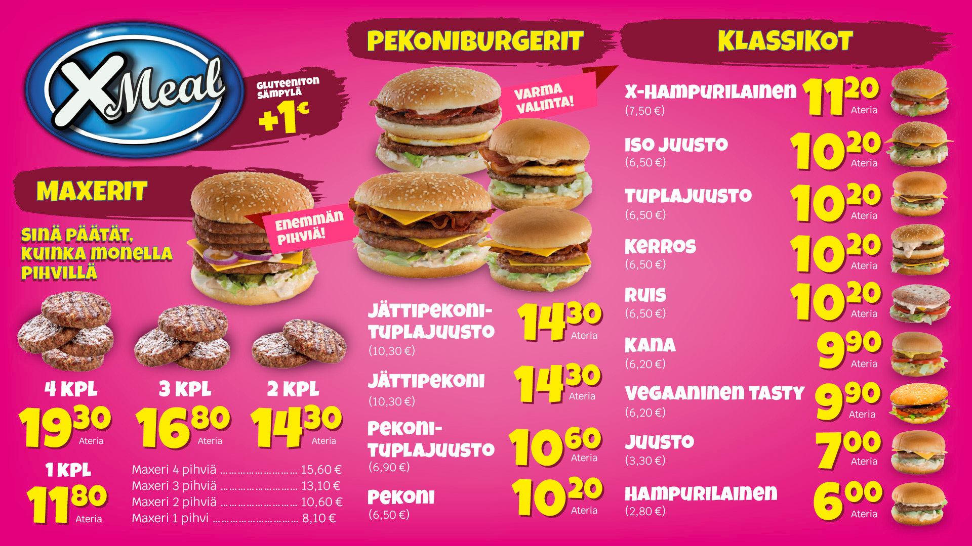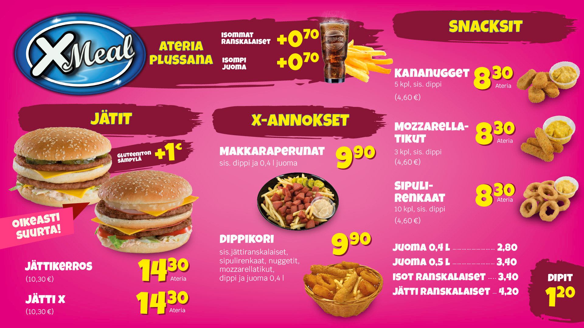 X-meal-ateriat ovat erityisen suosittuja – tutustu annoksiin oheisesta menusta ja valitse oma suosikkisi!